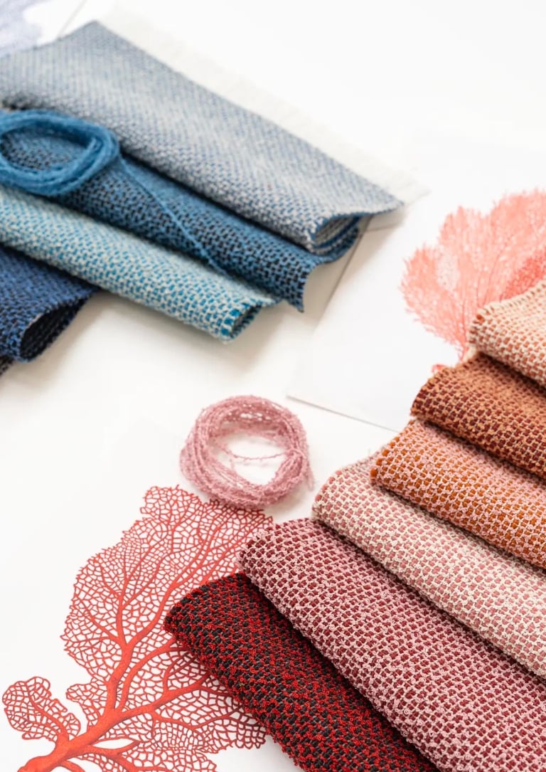 Baldinis audinys Coral talpina 34 spalvų paletėję, suskirstytą į natūralių spalvų grupes. Šie suderinamų atspalvių spektrai apima žemiškus ir raminančius neutralius atspalvius, mineralinius raudonus, atkartojančius koralinius rifus ir saulės įkaitintus peizažus, retro įkvėptus tonus, suteikiančius nostalgiškiems atspalviams šiuolaikiškumo, vandenyno tonų gradaciją ir miško žalią spalvą, primenančią miško lajas ir sąmanotus krūmynus.